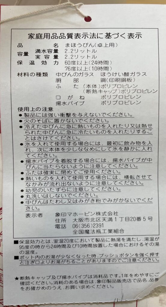 象印 まほうびん 中せんなし 押すだけポット AACN-22z(店頭価格¥1,480)